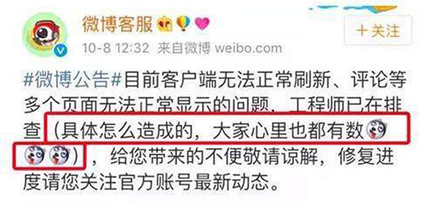 10月8日,國慶長(cháng)假最后一天的中午12點(diǎn)“國民校草”在微博上給了眾粉絲一波甜蜜暴擊,公布了與“國民閨女”的戀情。這波暴擊一出,可苦了微博的程序小帥哥了。一度造成新浪微博癱瘓大半天。也炸得無(wú)數吃瓜網(wǎng)友一臉懵逼。