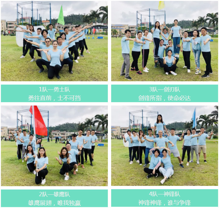 在拓展任務(wù)開(kāi)始之前,按照教練指導分成4支分隊,通過(guò)隊名、口號、造型來(lái)建立團隊展開(kāi)激烈競爭!拓展項目結束后統計分數角逐出第一名進(jìn)行頒獎!