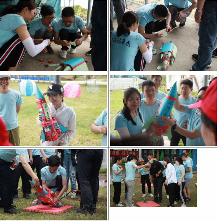 項目一是火箭飛行。主要是考驗隊伍成員的動(dòng)手及創(chuàng )新能力。每個(gè)隊伍有2個(gè)大可樂(lè )瓶、3個(gè)礦泉水瓶,6張A4紙,以及膠布等工具,各個(gè)隊伍自行設計隊伍的火箭,隨后進(jìn)行火箭外觀(guān)比拼和火箭飛行距離比拼角逐出排名。