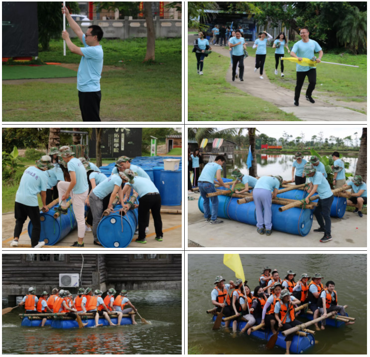 第二天,我們在風(fēng)雨兼程中度過(guò),項目繼續進(jìn)行著(zhù)。第一個(gè)項目是風(fēng)雨戰士。主要是考驗隊伍成員的高效溝通、突破創(chuàng )新、分工與合作,個(gè)人與團隊的關(guān)系。每個(gè)隊伍分出3人作為學(xué)習者,學(xué)習如何進(jìn)行扎筏,另外再分出2人作為信息發(fā)送組,借助隊旗向對岸進(jìn)行信息傳遞,其余成員作為信息接收組,接收完信息,教練確認無(wú)誤后,進(jìn)行下一環(huán)節,共同扎筏,隨后下水前往信息發(fā)送組所在地,并帶回發(fā)送組成員,按照完成的先后順序決定隊伍排名。